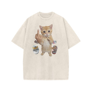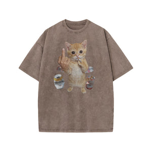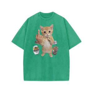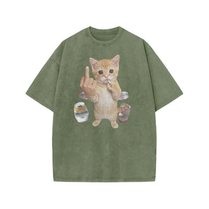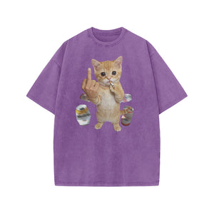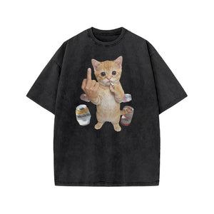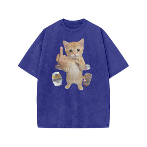 Dope Ass Cat Print Acid Washed T-shirt