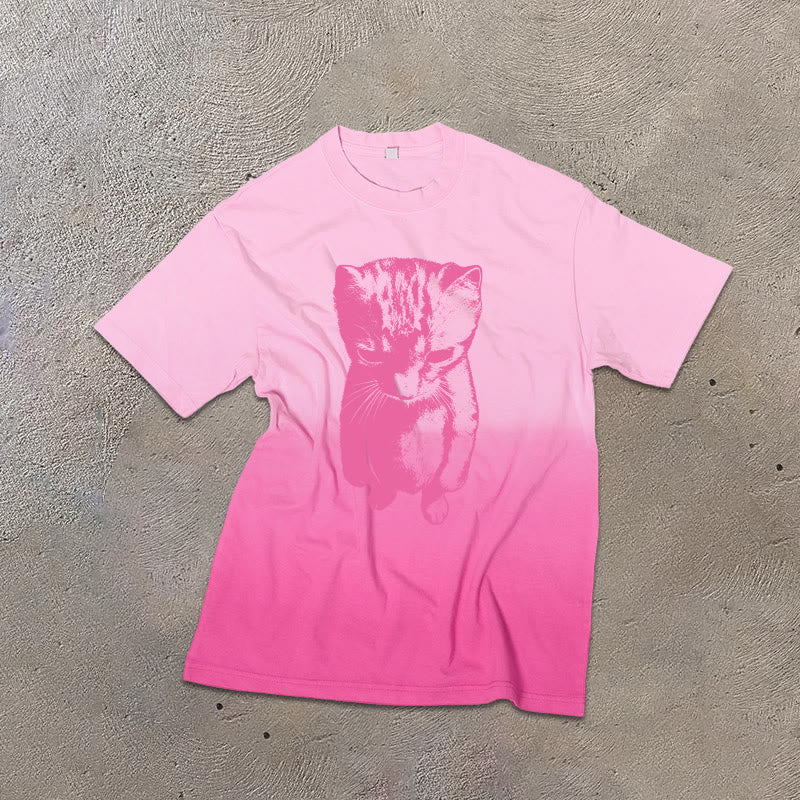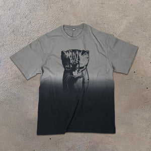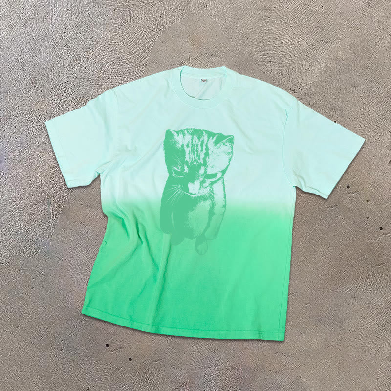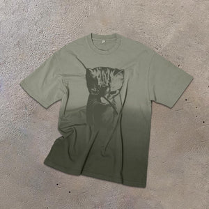 Funny Cat Meme Print Ombre Acid Washed T-shirt