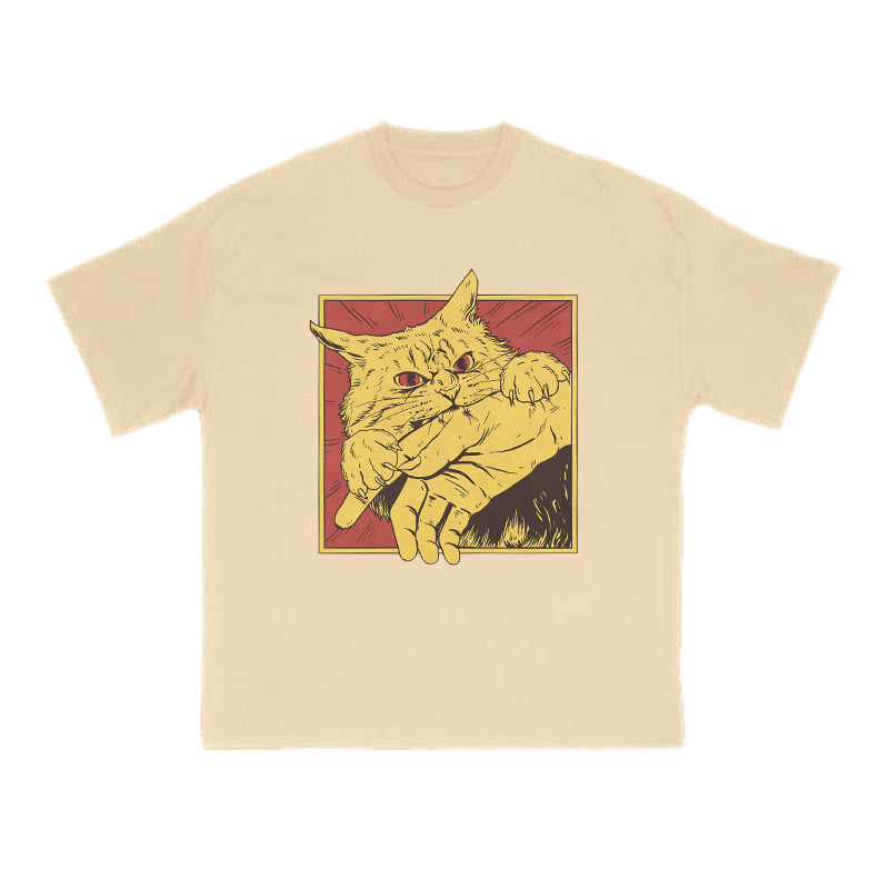 Unisex Cat Biting Hand Print T-shirt