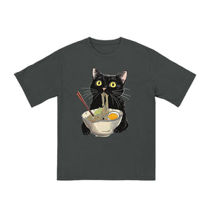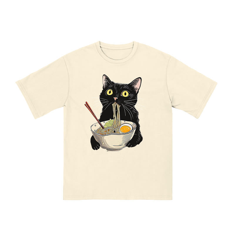 Unisex Cat Eating Ramen Print T-shirt