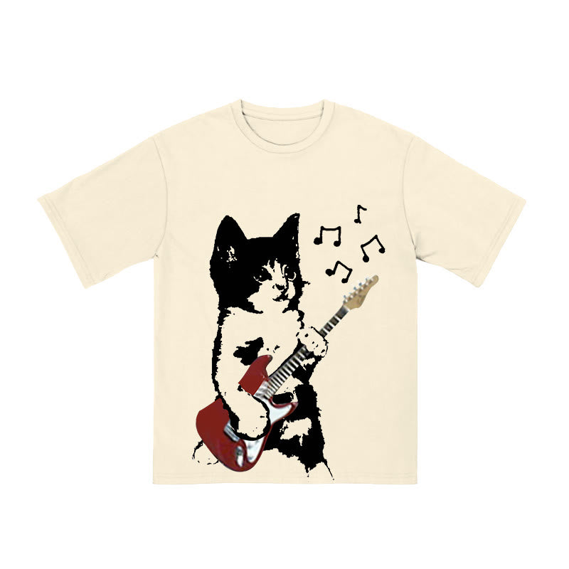 Unisex Cat Playing Electric Guitar Print T-shirt