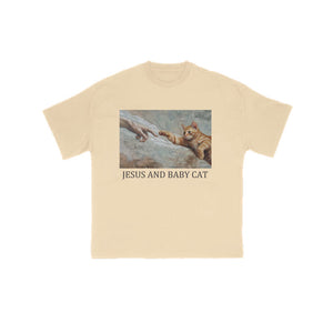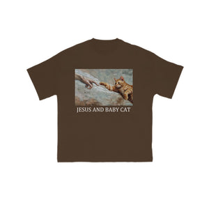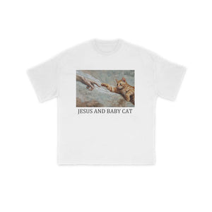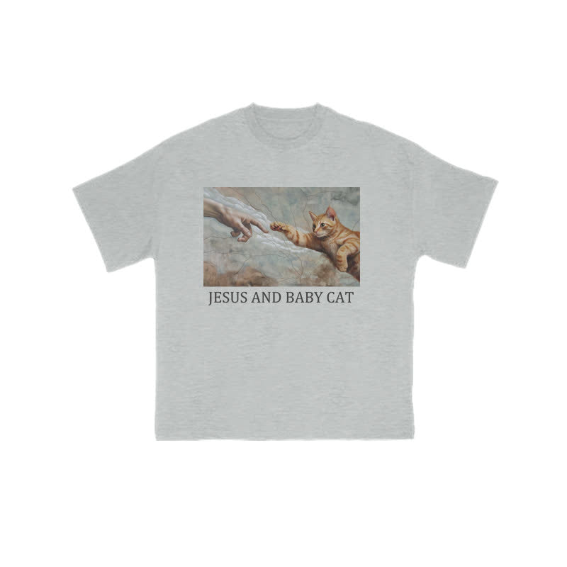 Unisex Jesus And Baby Cat Print T-shirt