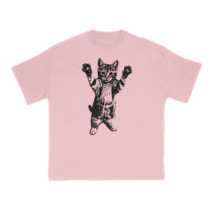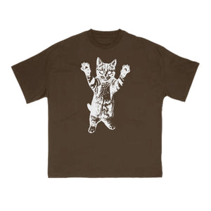Funny Cat With Its Paws Up Print T-shirt