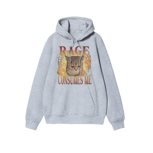 Rage Consumes Me Meme Cat Print Causal Hoodie