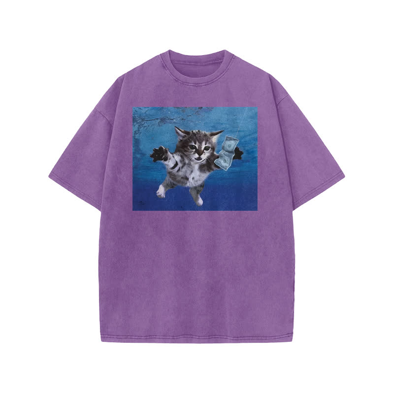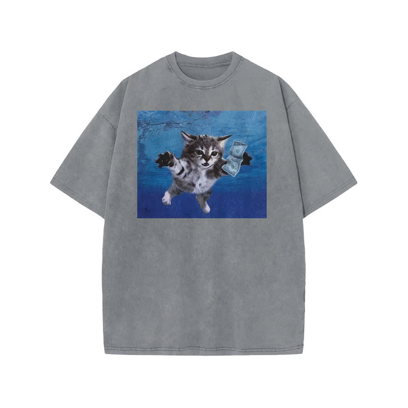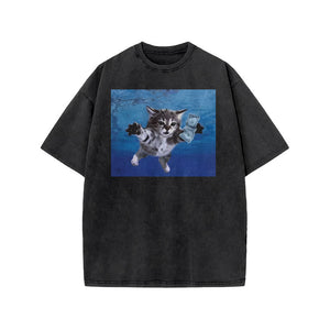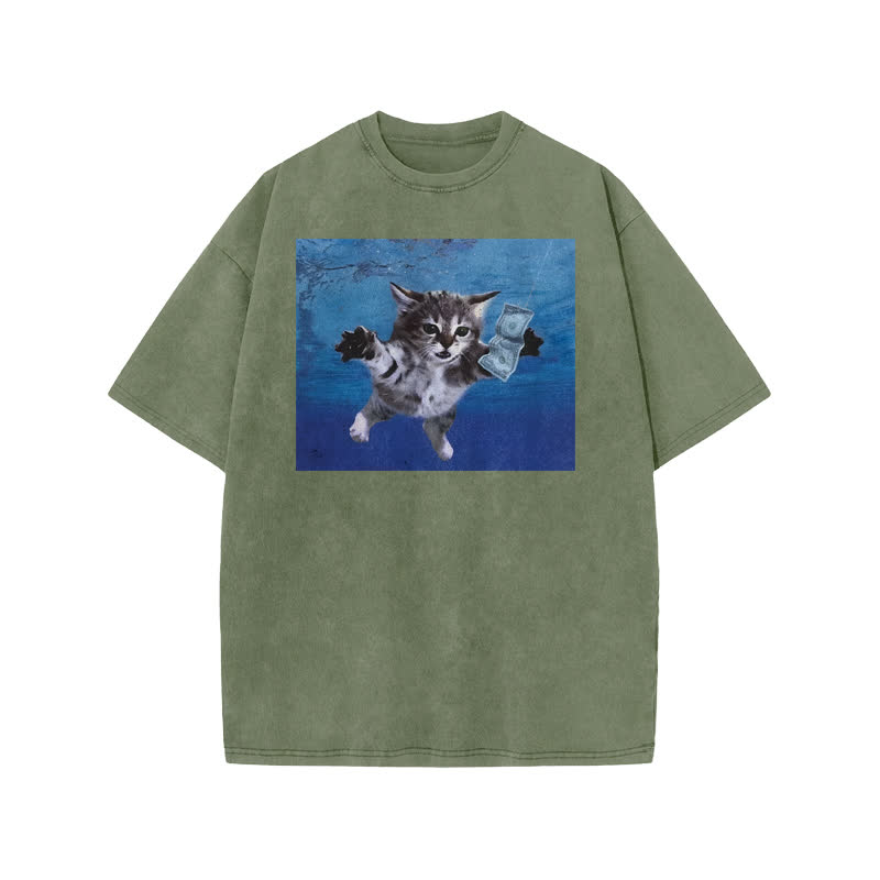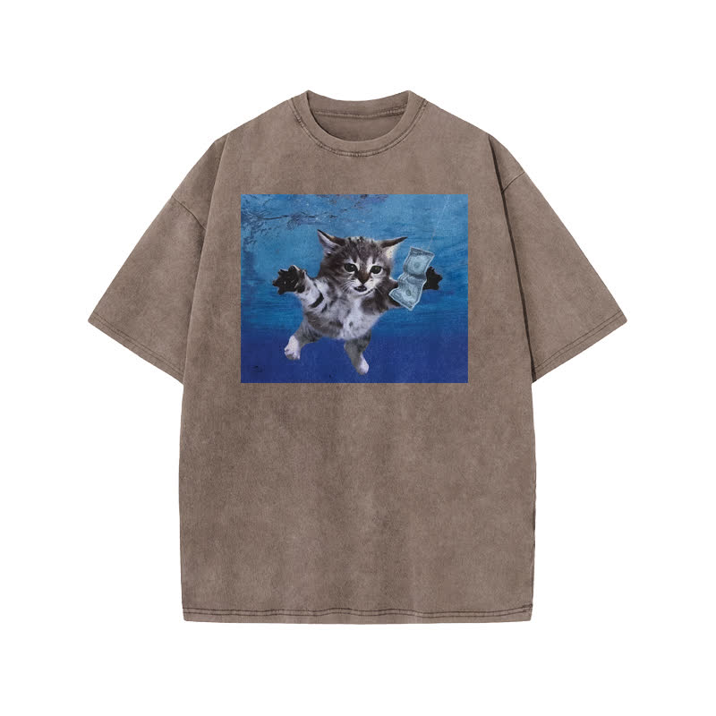 Unisex Fishing For Cats With Money Print Acid Washed T-shirt