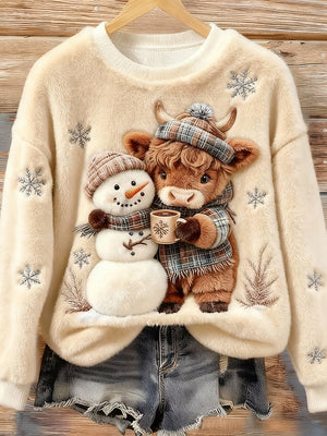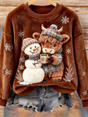 Sweat-shirt pour femme à imprimé vache des Highlands