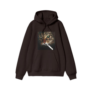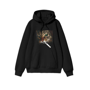 Unisex Cat With Cigarette In Mouth Print Hoodie