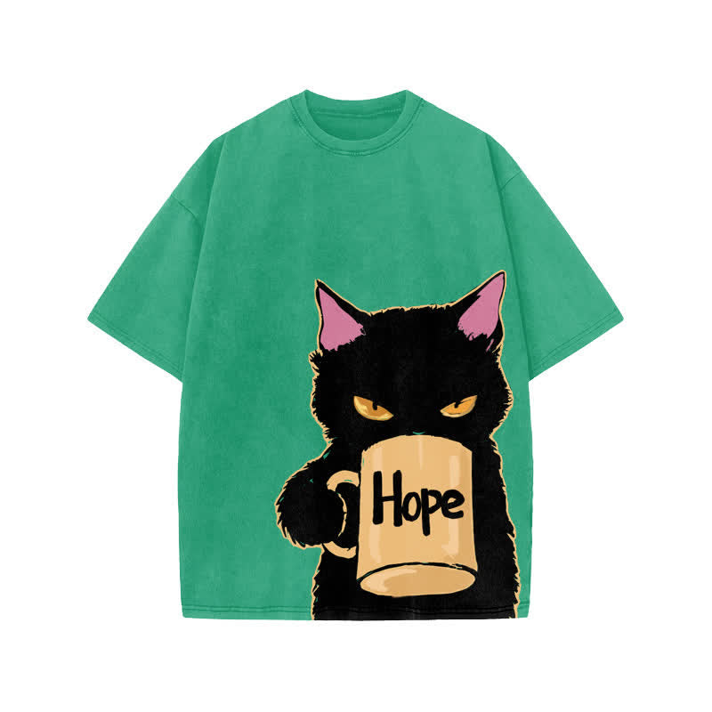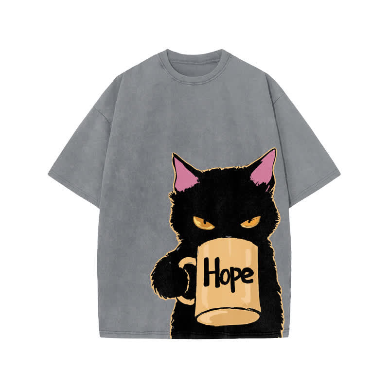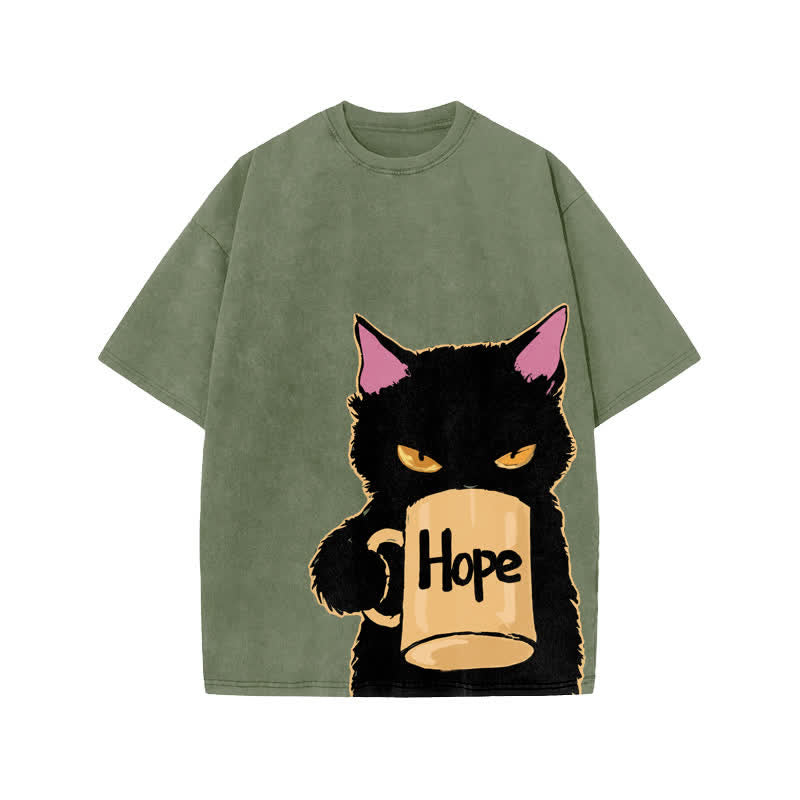 Unisex Hope Cat Art Print Acid Washed T-shirt