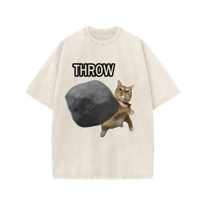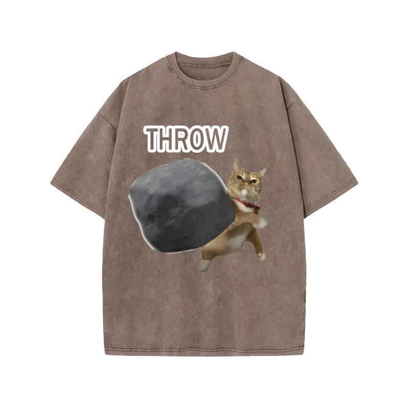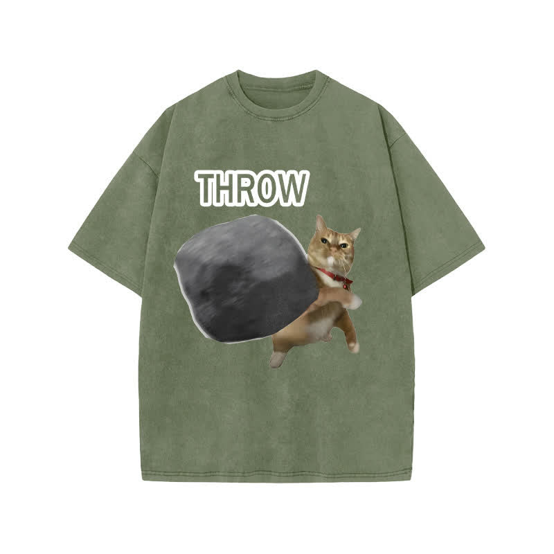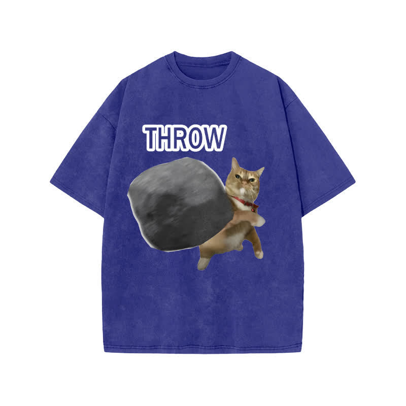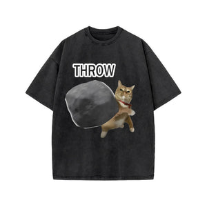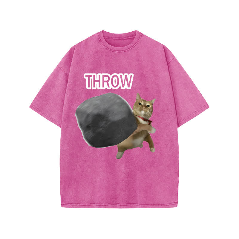 Unisex Violence Cat Art Print Acid Washed T-shirt