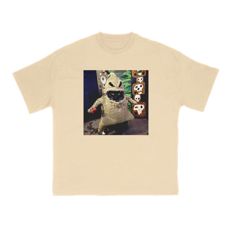 Unisex Cat Pretending To Be A Ghost Halloween Print T-shirt