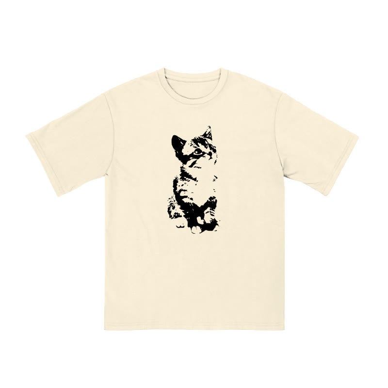 Unisex 100% Cotton Quiet And Well-behaved Cat Print T-shirt