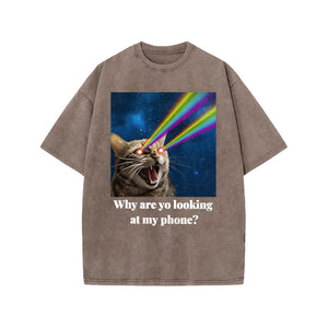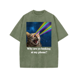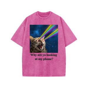 Unisex Why Are Yo Looking At My Phone Print Acid Washed T-shirt