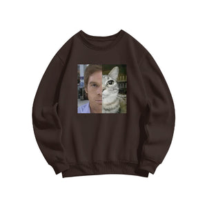 Unisex Patchwork Cat Print Sweatshirt