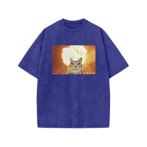 Unisex Funny Cat Print Acid Washed T-shirt