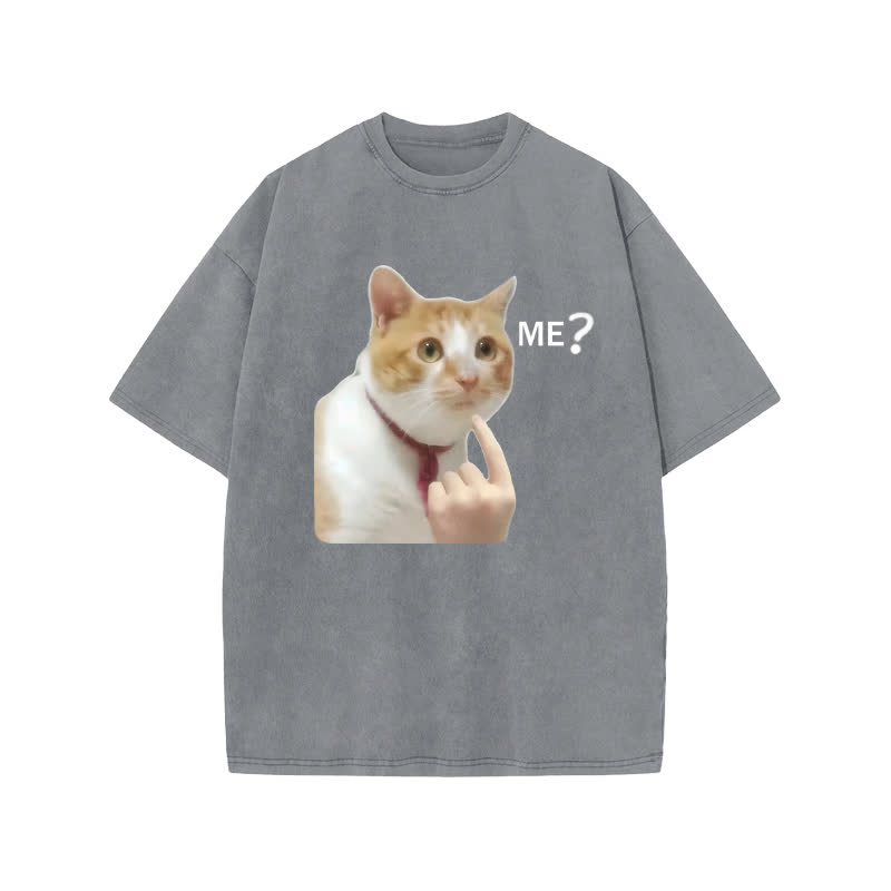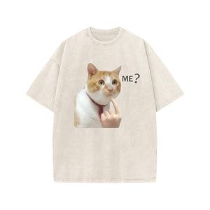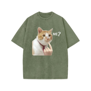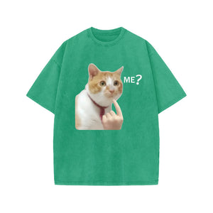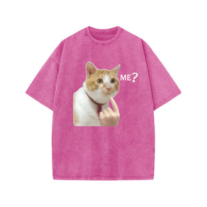 Unisex Puzzled Cat Print Acid Washed T-shirt