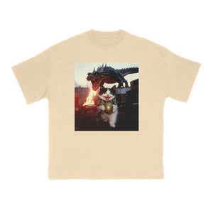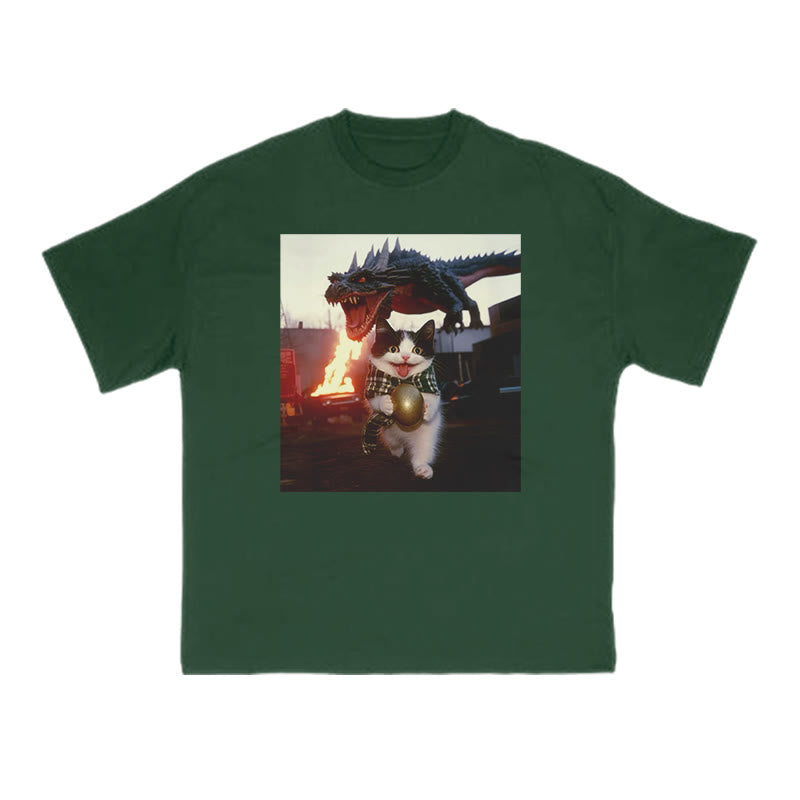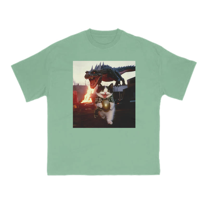 Unisex Cat Stealing Dinosaur Egg Print T-shirt