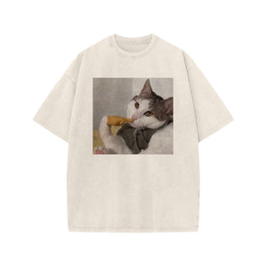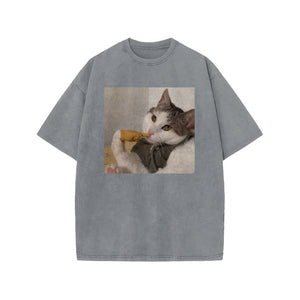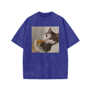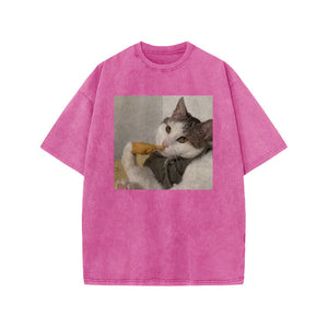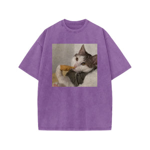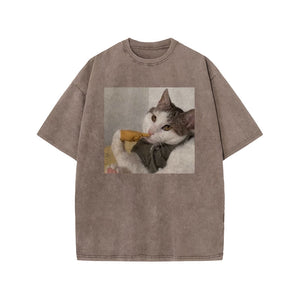 Unisex 100% Cotton Thinking About Cats Print Acid Washed T-shirt