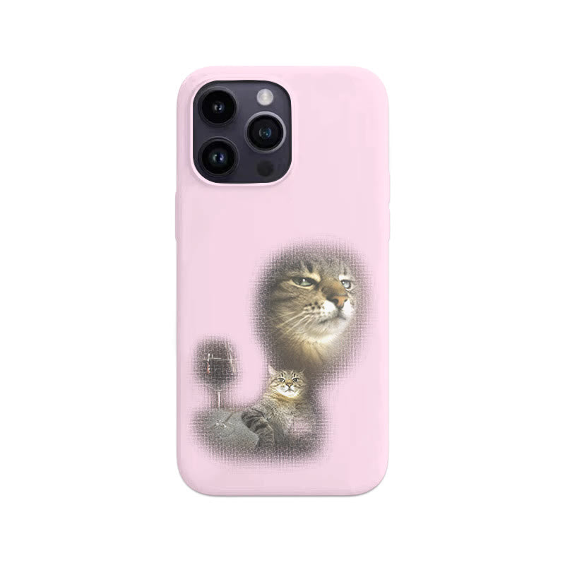Cat And Wine Print Large Hole Phone Case