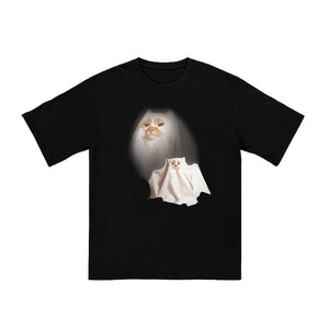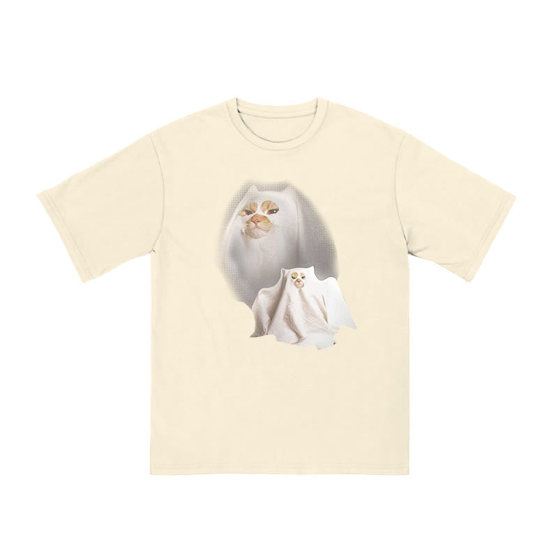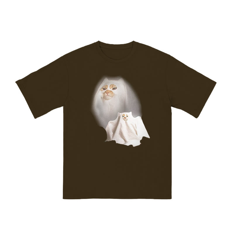 Unisex Cat Pretending To Be A Ghost Print T-shirt