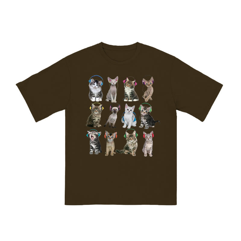 Unisex Cats Headphone Print T-shirt
