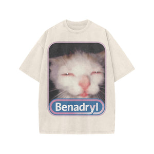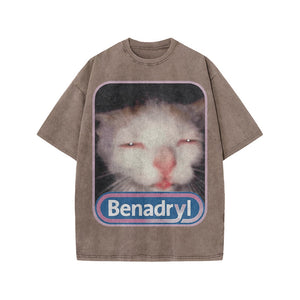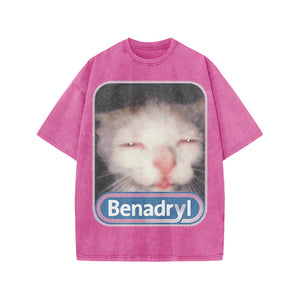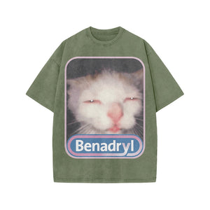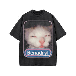 Unisex Benadryl Meme Cat Art Print Acid Washed T-shirt