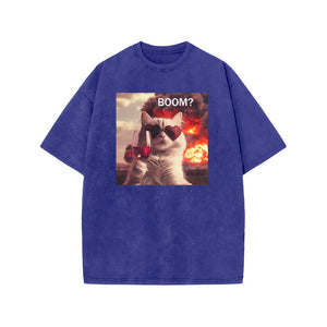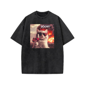 Unisex Elegant And Calm Cat Print Acid Washed T-shirt