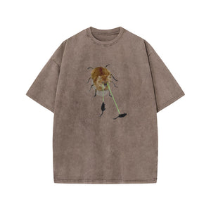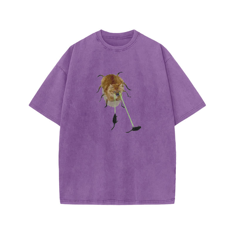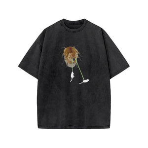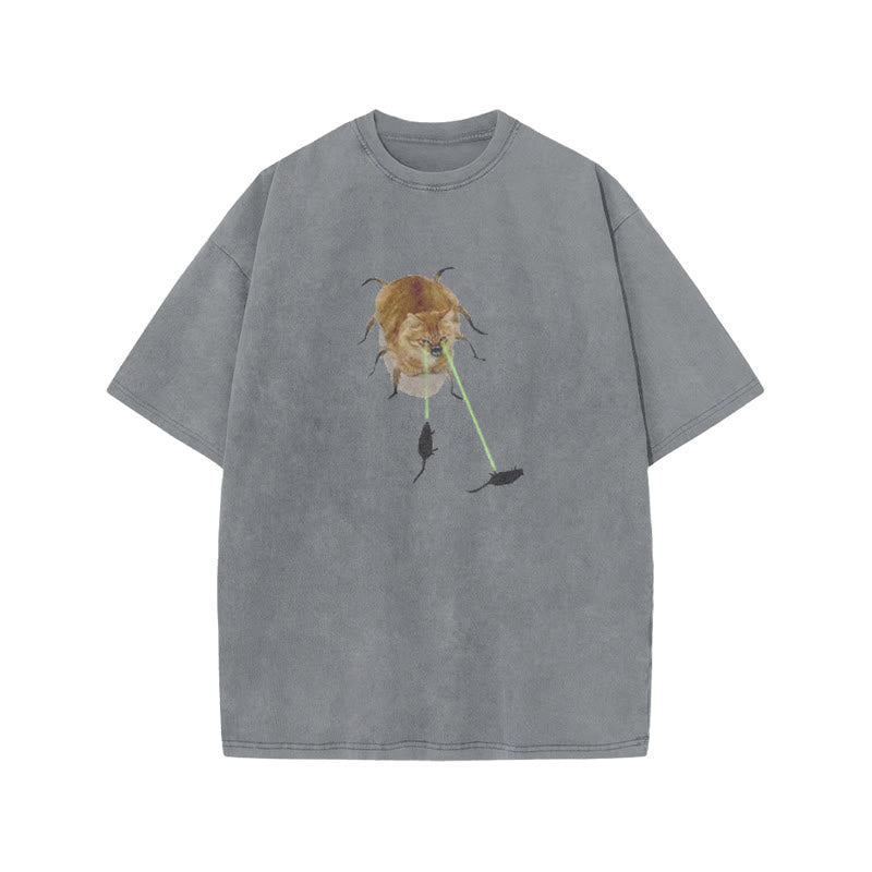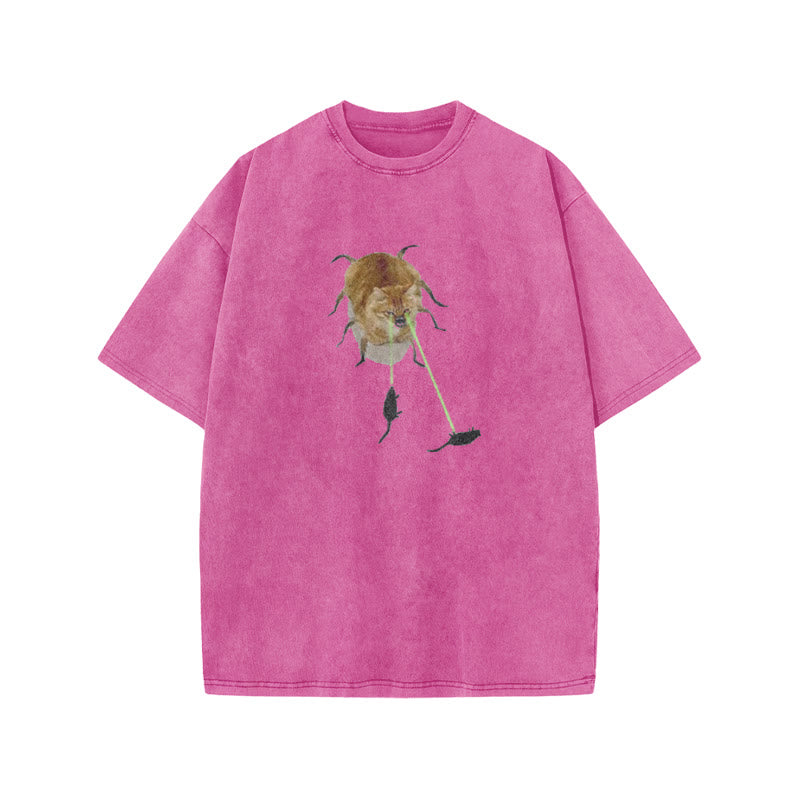 Unisex Spidercat Catching Mice Print Acid Washed T-shirt