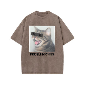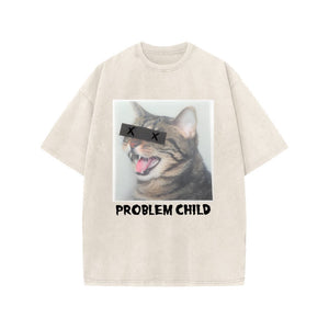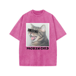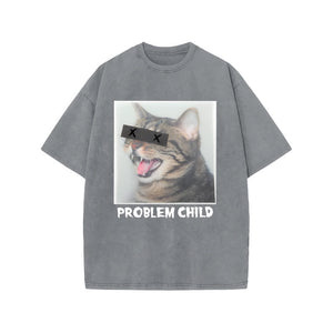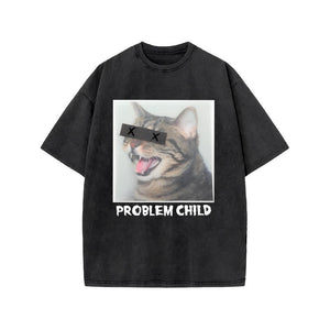 Unisex Problem Cat Art Print Acid Washed T-shirt
