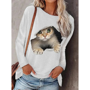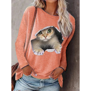 Women's long-sleeved T-shirt with cat pattern