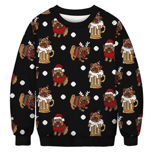 Christmas-themed animal 3D print long-sleeved sweatshirt