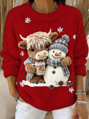 Women's Animal Highland Cow Yeti Art Print Crew Neck Top