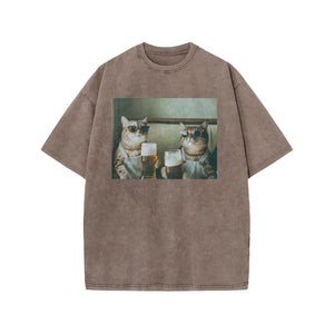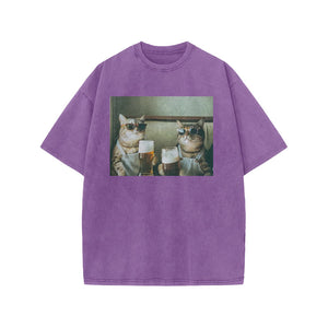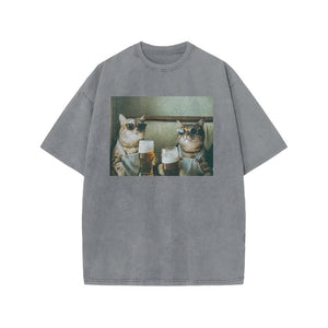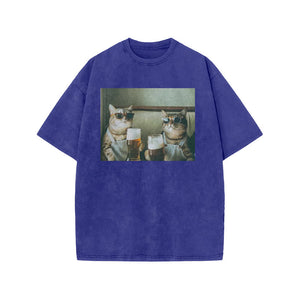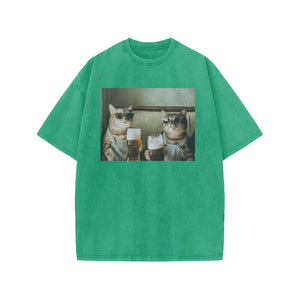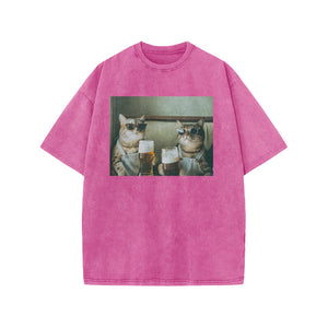 Unisex 100% Cotton Cheers Print Acid Washed T-shirt