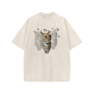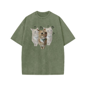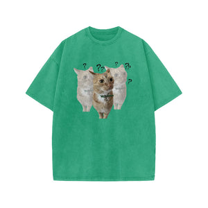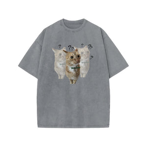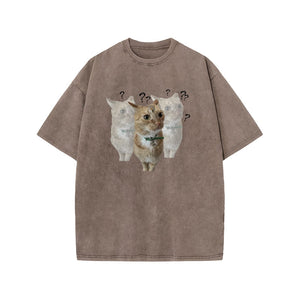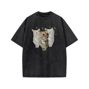 Unisex "Brain Is Loading" Fun Cat Pattern Print Acid Washed T-shirt