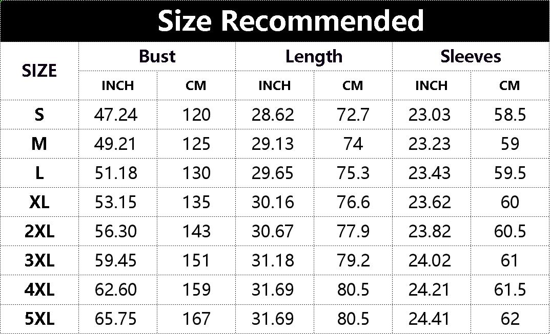 S, M, L, XL, 2XL, 3XL, 4XL, 5XL