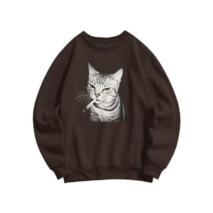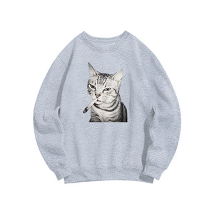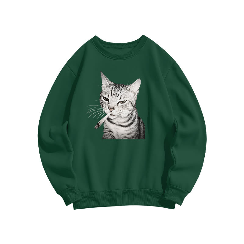 Tabby Cat With A Cigarette In Its Mouth Print Sweatshirt