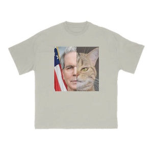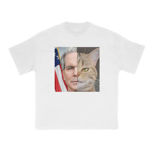 Unisex Confident Cat Patchwork Print T-shirt