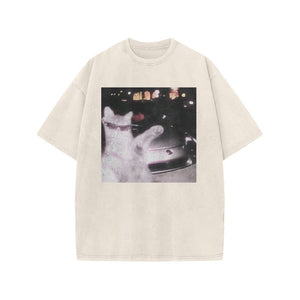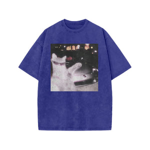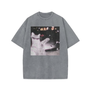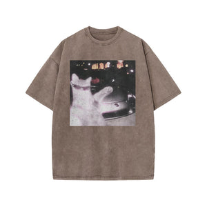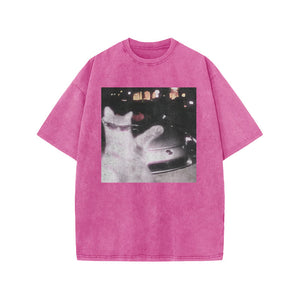 Unisex 100% Cotton Rich Cat Who Loves To Show Off Print Acid Washed T-shirt